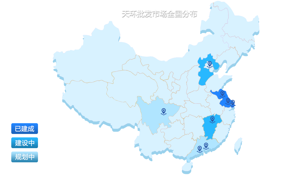目前已建成的南京和昆山天環(huán)凍品食品批發(fā)市場,以及在建和規(guī)劃中的南昌、廊坊、汕頭、東莞、成都